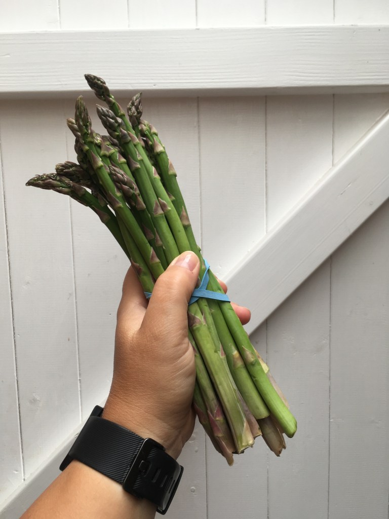 Fortunately, Oddbox, who work directly with suppliers to redirect their ‘waste’ and ‘wonky’ produce from the bin and into their subscription fruit and veg boxes were able to rescue this asparagus, which is how I have it in my hand. If I went to the local supermarket, a bunch of ‘perfect’ asparagus might have come from Peru (Sainsburys, asparagus spears, accessed on 11th June 21).